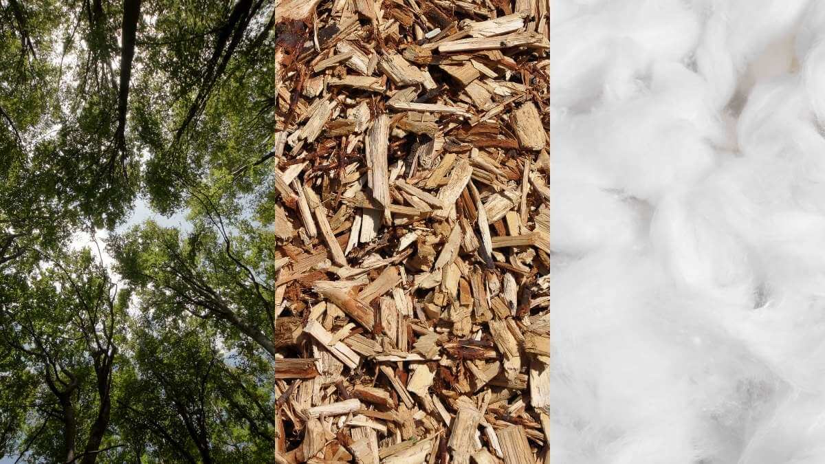 Okay, but what is Lyocell? Lyocell is actually a form of viscose, 3rd gen for you nerds. It is a semi-synthetic fiber, in that it is sourced from natural raw materials, but then modified and partially dissolved by chemical processes. Rayon comes from wood pulp, Modal from birch, Bamboo Viscose from Bamboo, Seacell from seaweed, and Lyocell from eucalyptus trees.